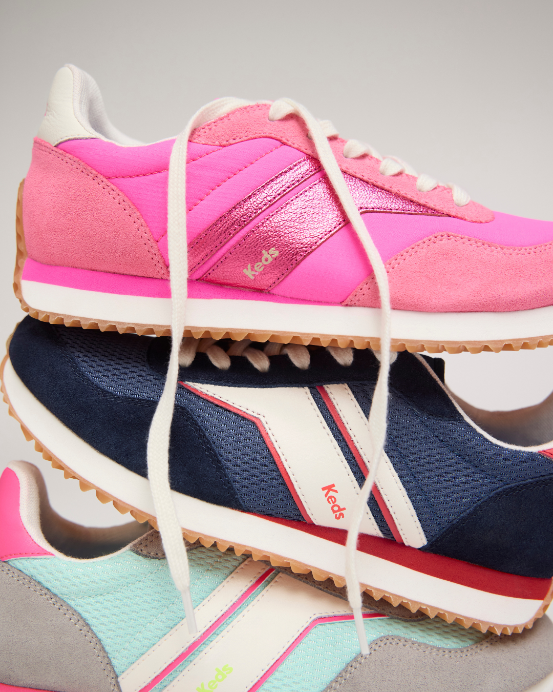 Rena Mesh/Leather Grey/Mint/Pink