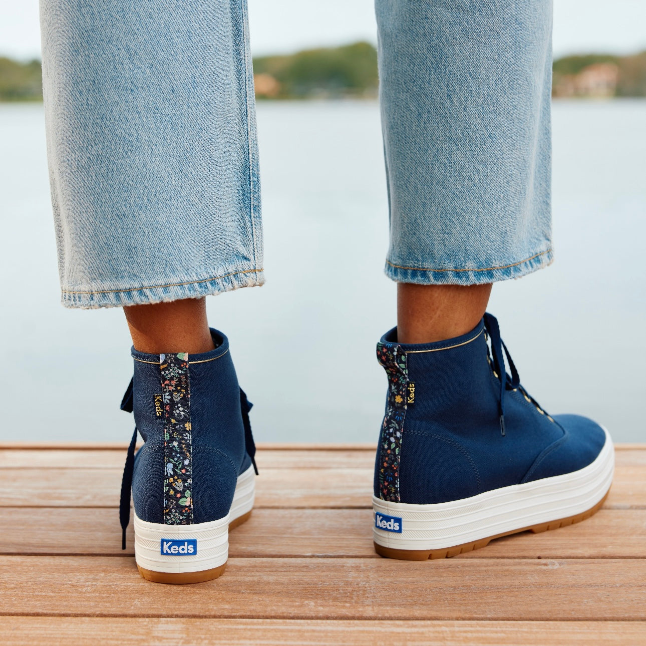 The edgy high-top Platform Lug levels up with a pop of florals. A dash of Rifle Paper Co.'s Bramble Fields print provides the perfect contrast to the lug outsole of this modern platform sneaker. With a soft canvas upper, breathable twill lining, and super-cushiony footbed, this high-top will keep you going strong and looking great all day. Plus, 1-inch platforms offer a stylish lift, while lightweight rubber won’t weigh you down.